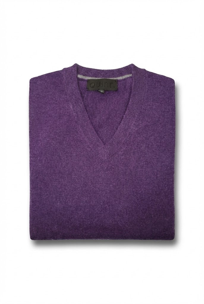 Quinn - Men's Luxurious 100% 2-ply Cashmere "V-Neck"- Purple Heather